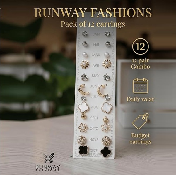 Transform your daily style with the Runway Fashions 12-Pair Stud Collection. This thoughtfully curated set features 24 individual pieces, offering a diverse range of floral, geometric, and classic designs in durable alloy and vibrant resin. Whether you’re heading to the office, a casual brunch, or a school event, you’ll always have the perfect match. Designed for both women and girls, these lightweight studs provide all-day comfort and endless mix-and-match possibilities for your wardrobe.