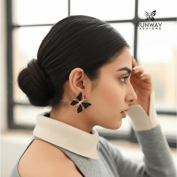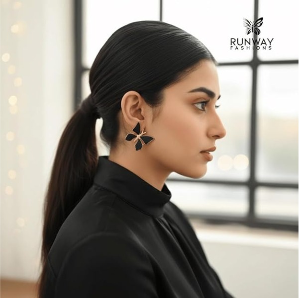 - Striking Black & Gold Contrast: Features a bold black finish paired with premium 18K gold plating. This high-contrast designer look provides a modern, edgy twist on the classic butterfly motif.